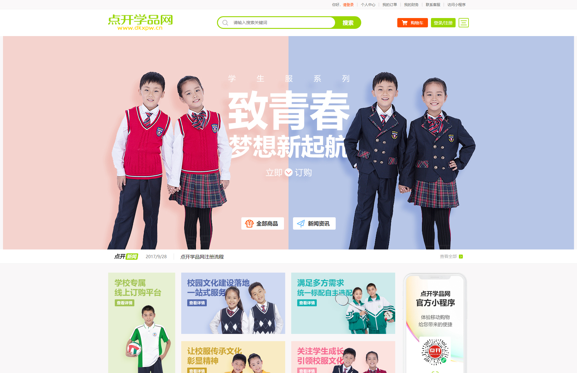 讓校服傳承文化,彰顯精神,關(guān)注學(xué)生成長(zhǎng),引領(lǐng)校服文化,校園文化建設(shè)落地一站式服務(wù),學(xué)校專屬線上訂購(gòu)平臺(tái),研發(fā) 生產(chǎn) 銷售 于一體,品質(zhì)精益求精 嚴(yán)把質(zhì)量細(xì)節(jié)。